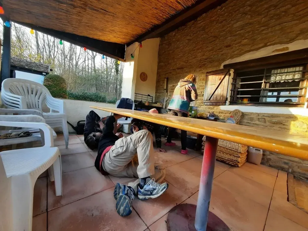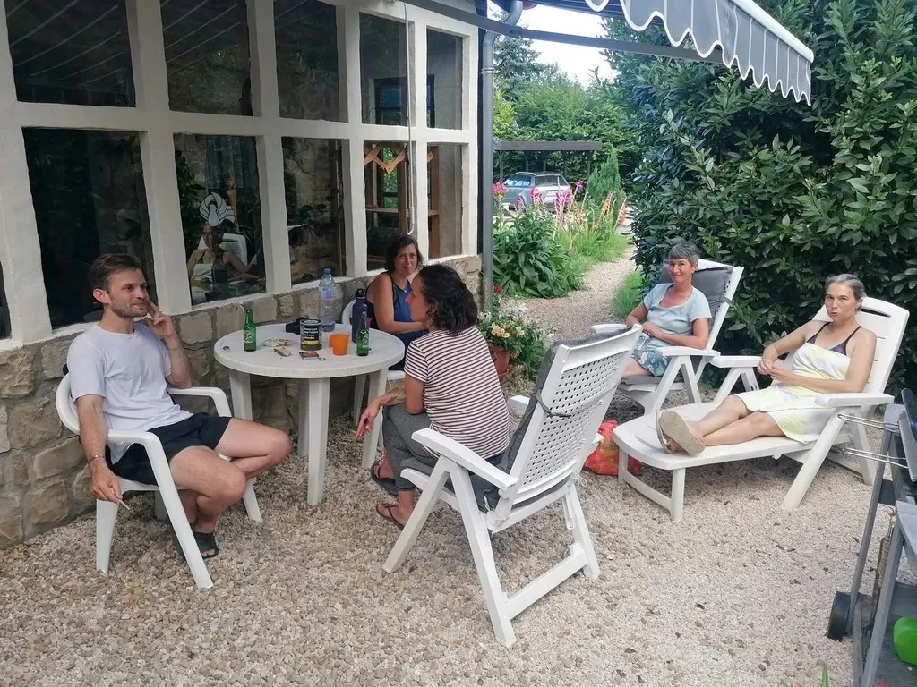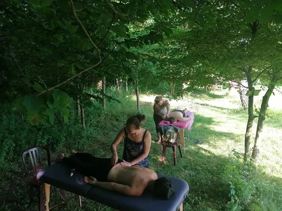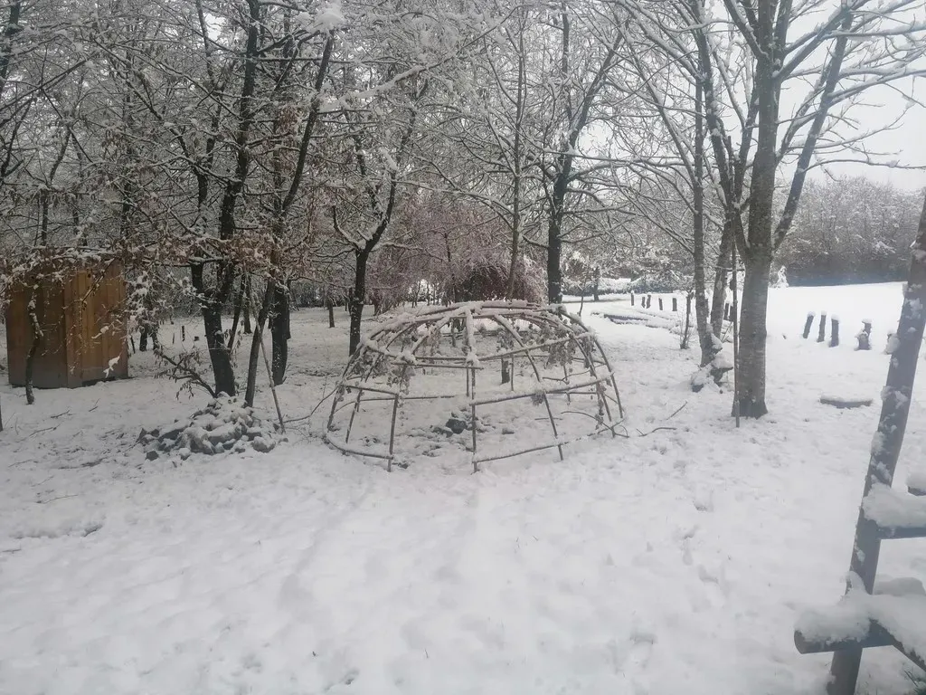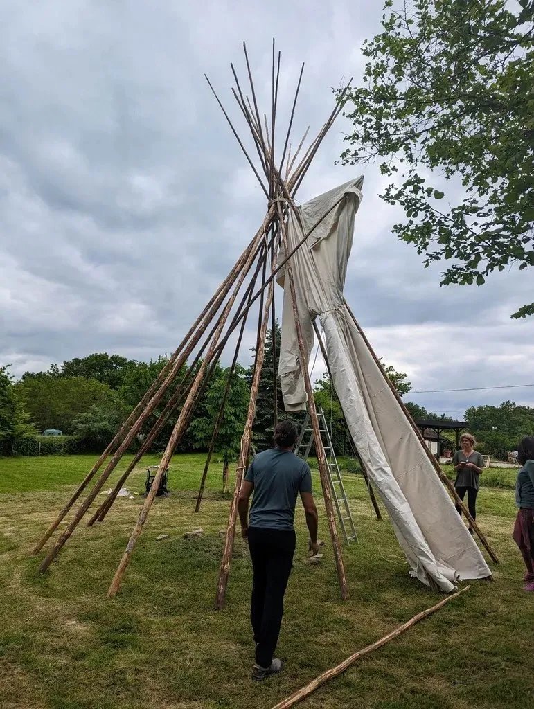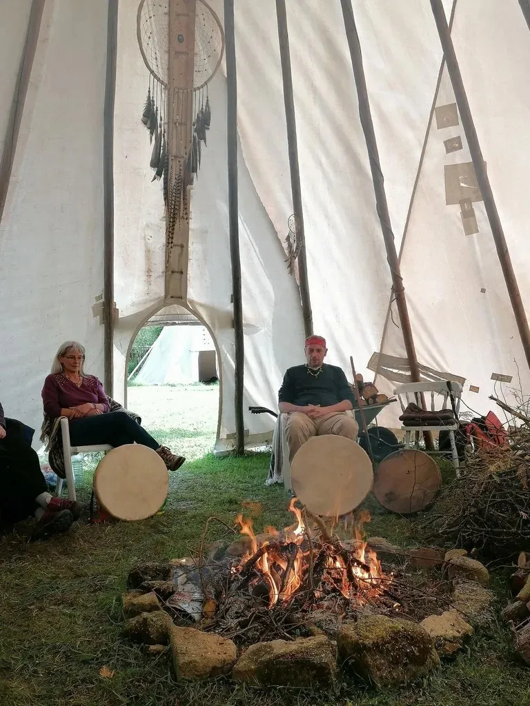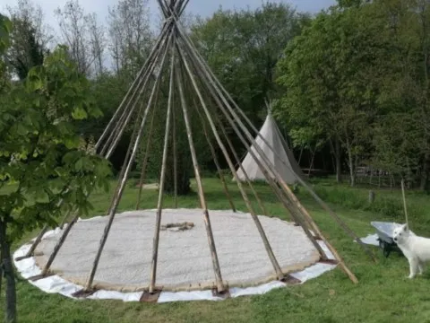Cette belle maison en pierres, son beau jardin, son bois, son four à pain, ses tipis, son jacuzzi, sa cuisine d'été, sa hutte de sudation, sa roue médecine mais aussi son salon au coin du feu et ses chambres vous permettront de passer d'excellents instants chamaniques!
